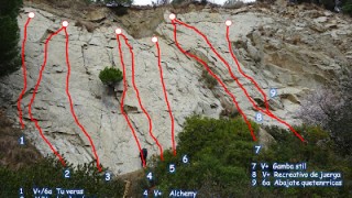 24/02/21. Tercera visita al Sector Bonavista, Badalona. Avui fem les dues vies què ens quedaven, Recreativo de juerga de V+ i Abajate queterriscas 6a. El grau és...