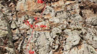 Un itinerari ben ferm de fissura díedre amb un petit toc herbós.La tirada central és un breu parentesis entre dos bons llargs d'escalada atlètica amb passos de bloc i alhora...