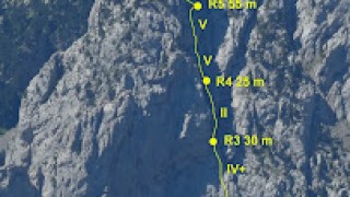 Malgrat trams herbosos puntuals he trobat que és una bona via.Es tracta d'una successió lógica de fissures i díedres de diversos tamanys i formes rematats amb una...